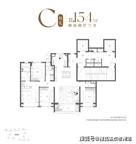 另外, 主卧小家化的套房设计、270度的南向瞰景阳台、四开间朝南的开阔尺度。