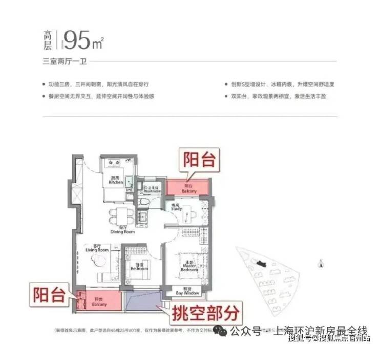 再加上南向大面宽短进深、全卧飘窗、L型转角阳台设计,哪怕小户型89㎡3房,尺度感都超棒,采光和视野更是一流。