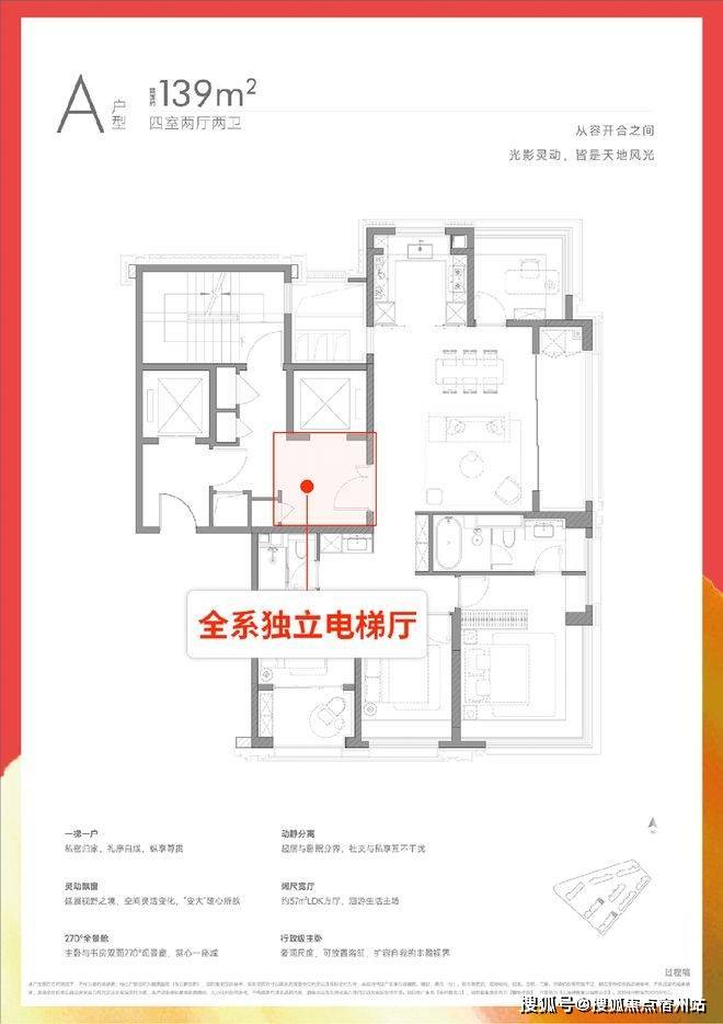 作为8号楼的“景观核心”,139㎡户型以边套产品的先天优势,打造出无遮挡的全景体验。