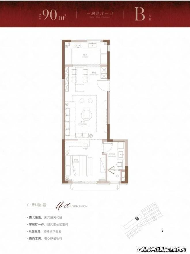 建面约90m²尊享1房户型,在100m²的基础上,进一步降低总价门槛的同时,也带来了设计上针对实用性的小巧思。