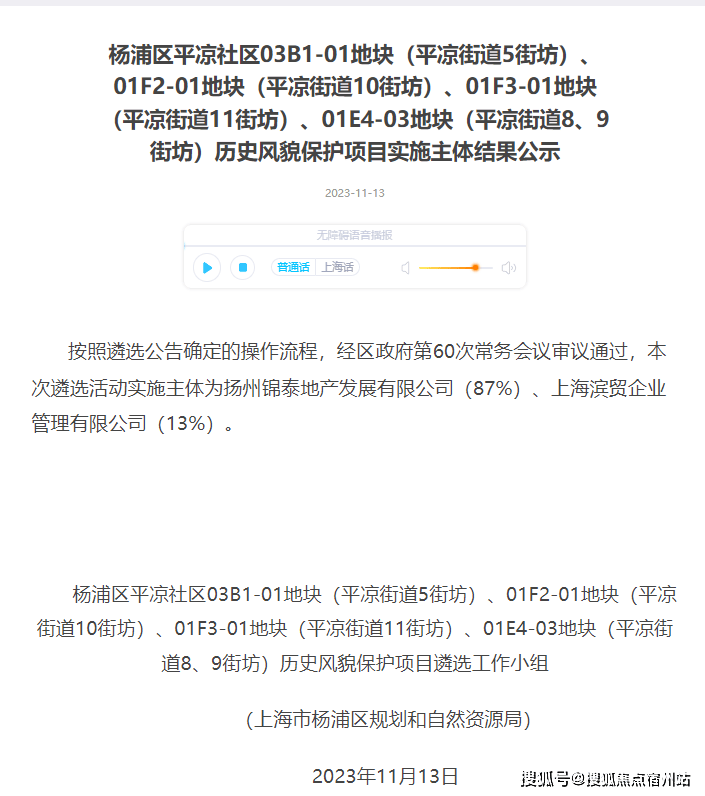 2023年12月,中信泰富(87%)联合杨浦国资(13%)通过协议出让,以总价1143905万元,楼面价63127元/m²竞得4宗打包地块:杨浦区平凉社区03B1-01地块(平凉街道5街坊)、01F2-01地块(平凉街道10街坊)、01F3-01地块(平凉街道11街坊)及01E4-03地块(平凉街道8、9街坊),总建筑面积18.1万㎡。(其中住宅建筑面积11.3万㎡,办公建筑面积5.2万㎡,商业建筑面积1.6万㎡)