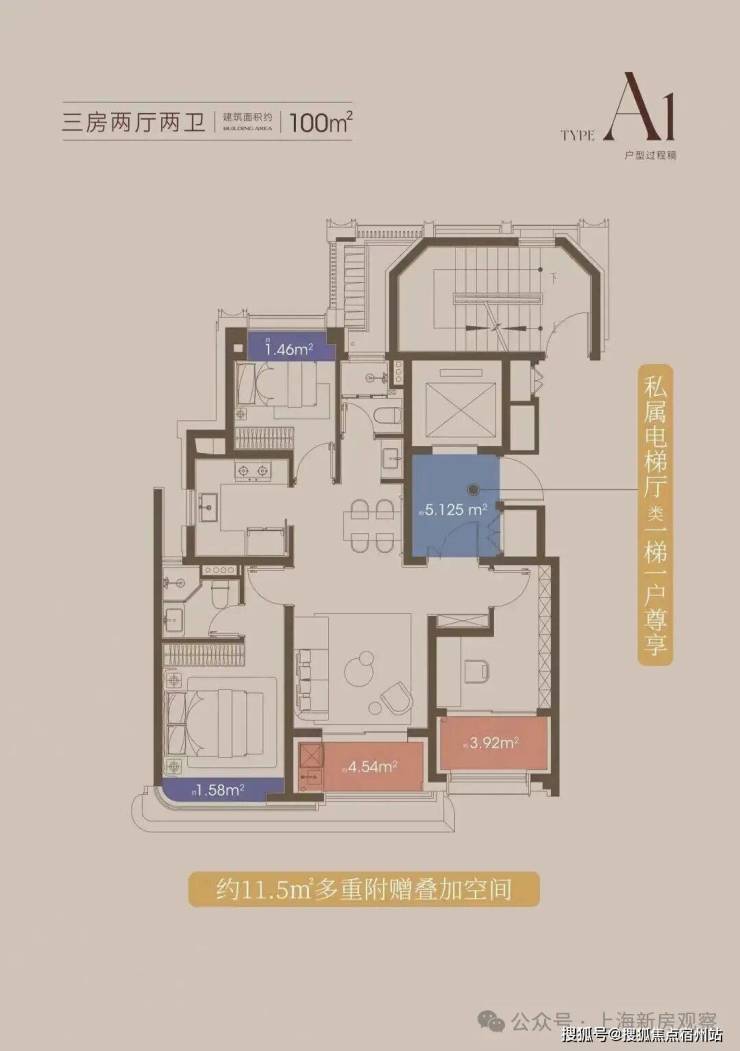 这意味着百平米的业主也能享受一整个独立的电梯厅,这是私密性的保障,更是生活的拓展。
