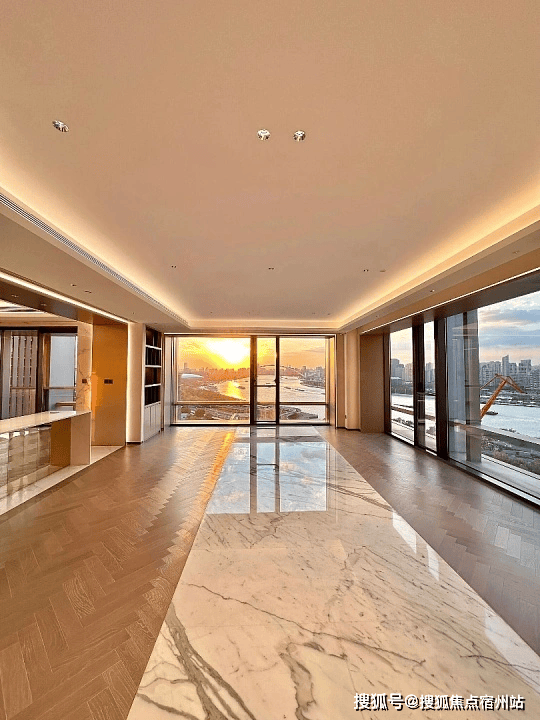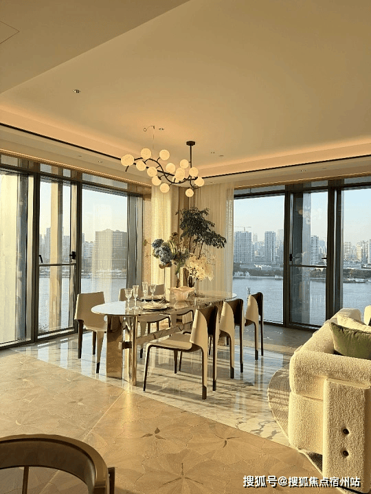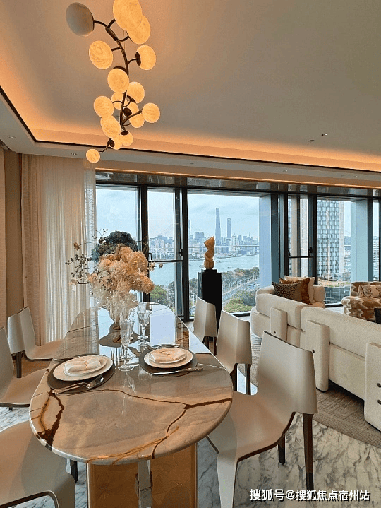 全系采用大面积玻璃幕墙,全屋落地窗设计,餐厅、客厅双面采光观景,部分户型可俯瞰陆家嘴 “三件套” 与黄浦江 S 湾,江景视野无遮挡。
