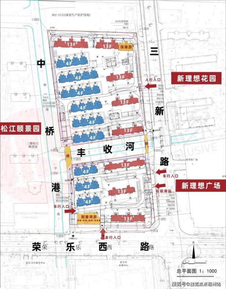 项目由两幅小地块组成(H02-16、H02-18),根据设计方案显示, 项目总共将建17幢4-13F的商品住宅 ,以及1幢配套用房,其中: