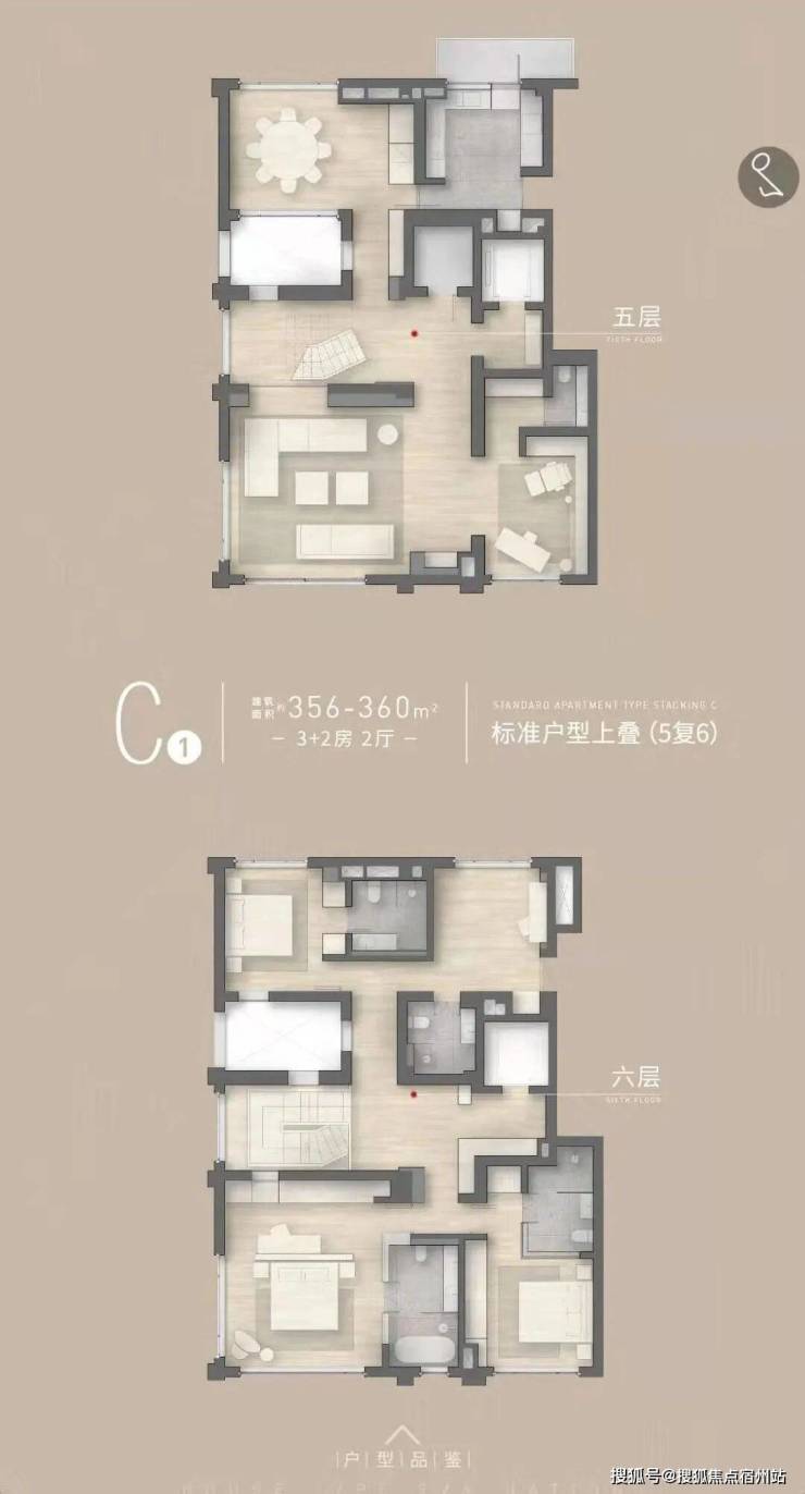 主力户型为约310-360㎡叠墅(1复2,3复4,5复6,共6层)