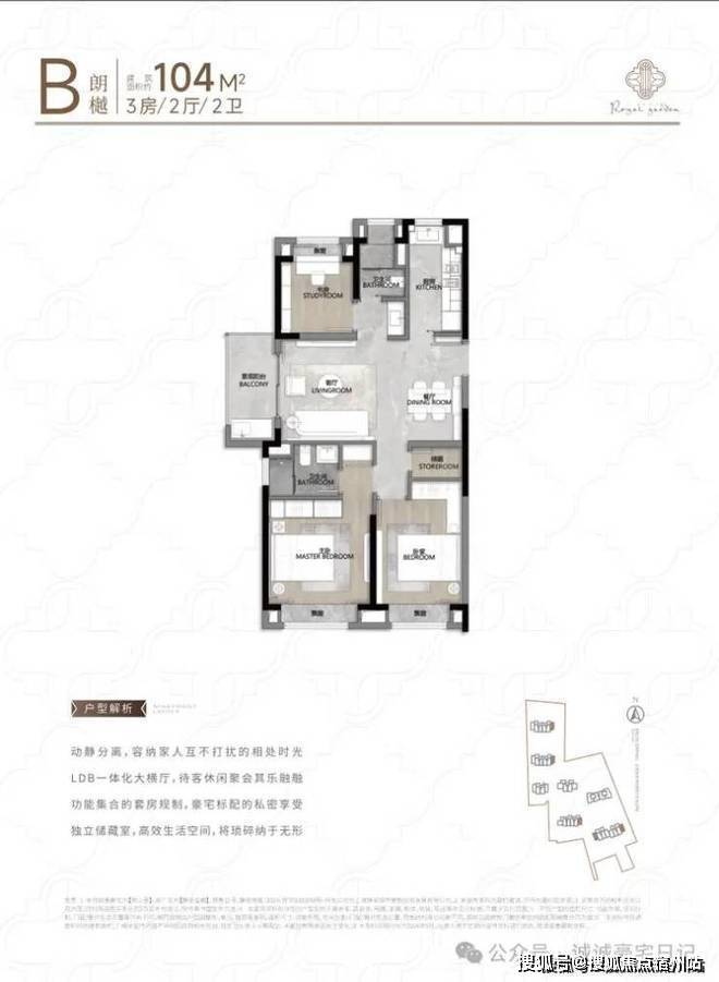 再看建面约104㎡B户型: