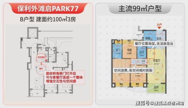 当下市场,入门三房面积正大幅扩容,普遍达到108-110㎡,甚至直接跃升至120㎡。而保利外滩启PARK77 建面约99-102㎡3房,堪称市中心最后一批“百平米三房”,一旦错过,购房成本将直接增加100多万!