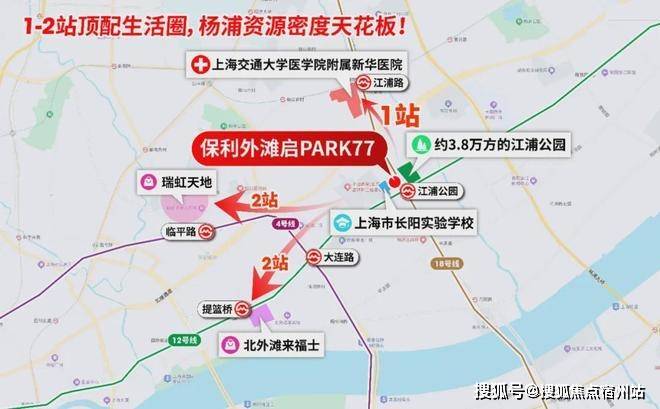 更难得的是,1-2站范围内,三甲新华医院、北外滩来福士、瑞虹商圈、江浦公园、长阳实验学校等顶配资源一应俱全。