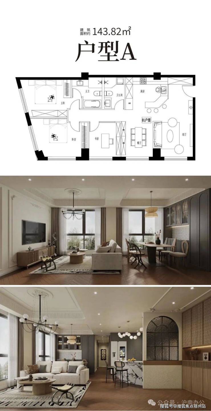 【🏠户型】:136平两室两厅两卫,餐客厅分区,设计品茶区,L型开放式厨房,全屋落地窗;