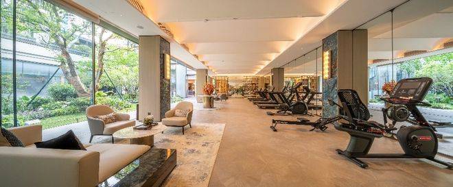健身空间,搭配海派砖花地砖,极尽静奢风潮。大面积落地玻璃与下沉庭院的浓荫深度交融,或瑜伽、或健身,让心灵的在酣畅淋漓中重回宁静与自在。☑️☑️招商臻境售楼处电话:400 - 8377 - 020☑️☑️