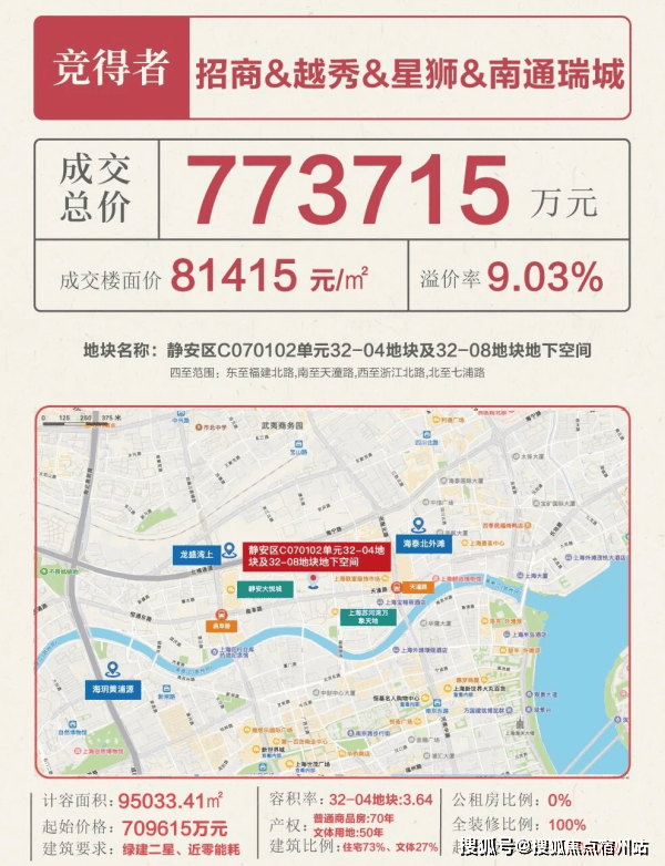 土地市场作为房地产的先行指标,直接反映区域的发展预期。2025年第八批次土拍中,苏河湾北岸地块吸引3家实力竞买人参与,经过52轮激烈竞价,最终由招商、越秀、星狮、南通瑞城组成的联合体,以11.8万元/㎡的楼板价成交,溢价率9.03%,预示着未来新房售价将指向20万元/㎡+(备注如下)。