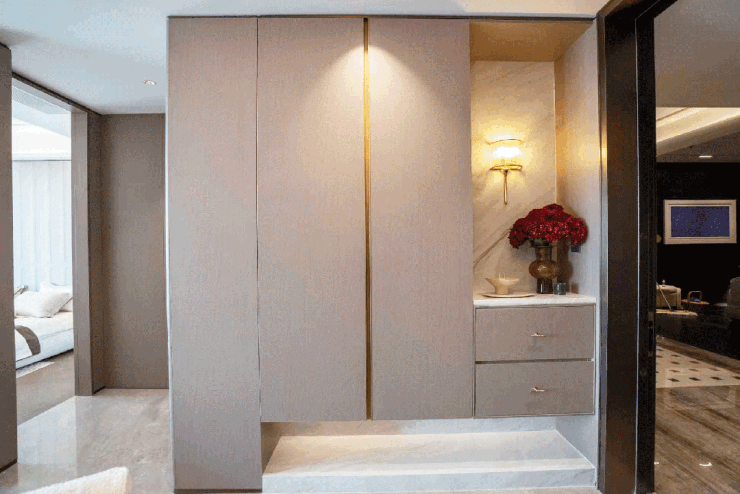 室内很多材质都采用ENF级环保板材。这是目前国标最高等级的环保标准,从源头杜绝甲醛隐患,尤其适合有老人和小孩的家庭。这种“隐形投入”虽不显眼,却恰恰是好房子最该有的担当,让居住不仅舒适,更足够安心。