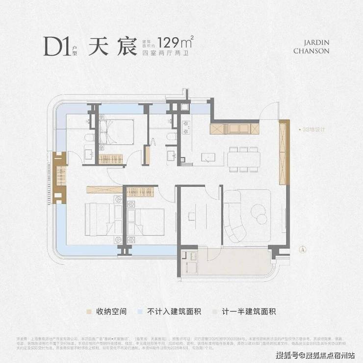 延续了3S墙和双270°全景双舱的亮点,尺度感进一步提升。南向四开间保证了更充沛的阳光,客餐厅与超大尺度阳台贯穿南北,进门视野无遮挡,大宅气度油然而生。