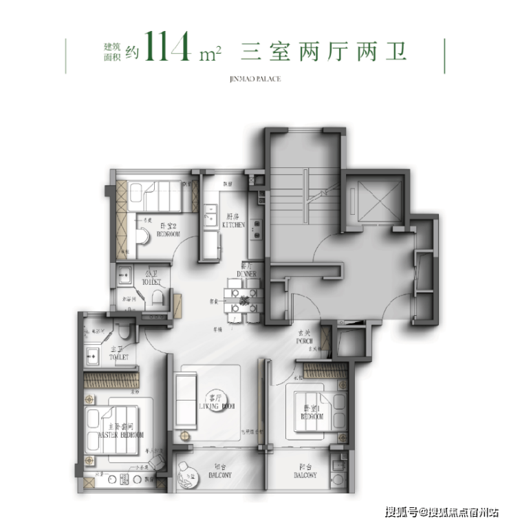 建面约114㎡样板间实景图,以实际交付为准