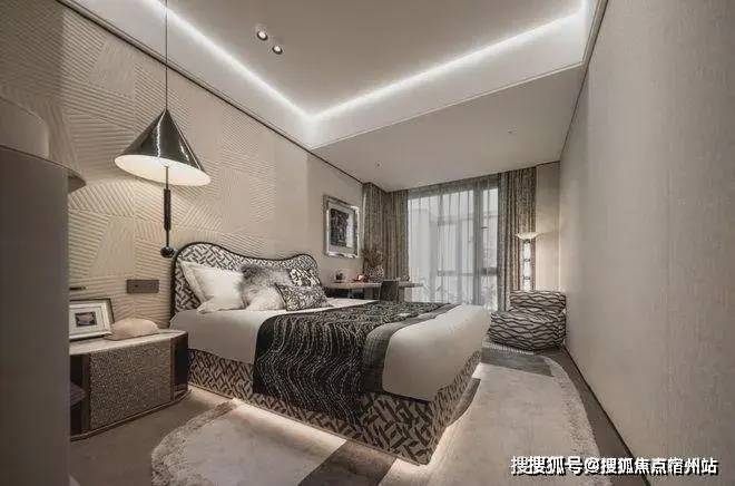 即便放了双人床、两个床头柜、一个收纳柜、✅✅招商序售楼处电话:400 - 8824 - 258✅✅两个休闲座椅和茶几,空间依旧绰绰有余,尺度感惊人!