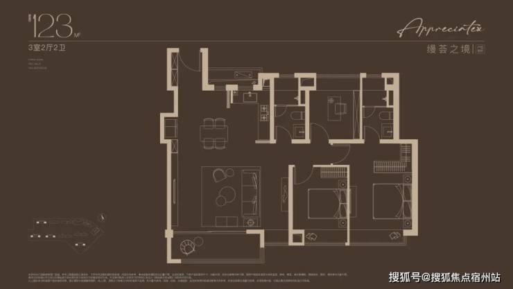 建面约123㎡3房户型,户型方正,三口之家的改善进阶之选!巧妙预留X空间,既可成为客厅空间的延伸,也可独立成室,实现更多功能想象。 约12.5米南向面宽 ,搭配 270°宽景阳台 ,窗外美景一览无余。