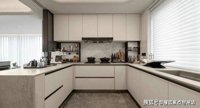 室内大量运用奢石,搭配统一木饰面与皮革材质,通过圆弧设计、隐形出风口、无高差客厨地面等“隐形美学”处理,让奢华与舒适完美融合。