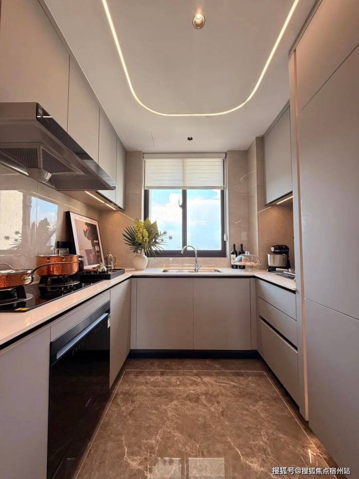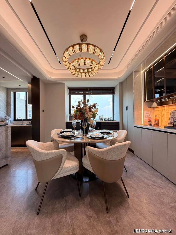 客餐厅一体化,且空间相对独立,客厅南连宽景阳台,加上层高均3米,尺度感和空间感铺展开来;