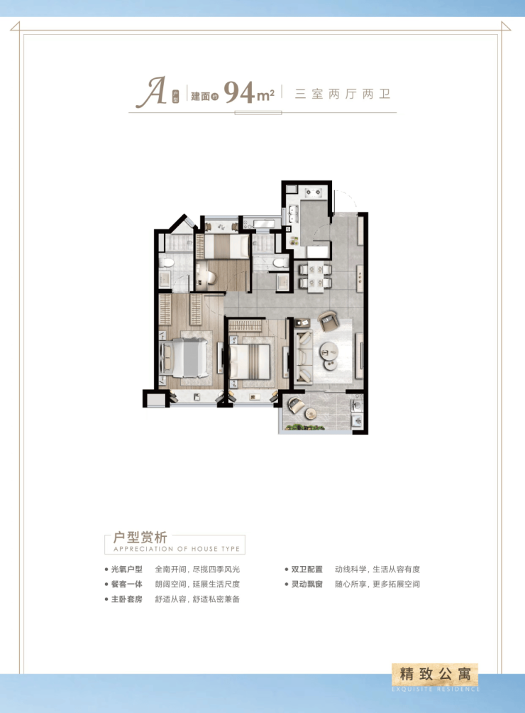 ②94平 (三室两厅两卫) 全南户型,南北通透