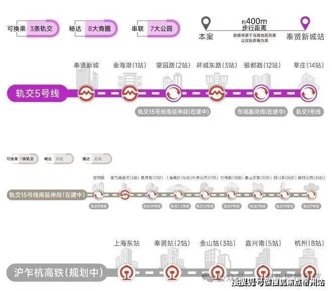 交通方面:项目多轨交环绕,5号线、15号线南延伸段(在建中)、市域嘉闵线南延伸段(规划中)、沪乍杭高铁(规划中)及南枫线(在建中)