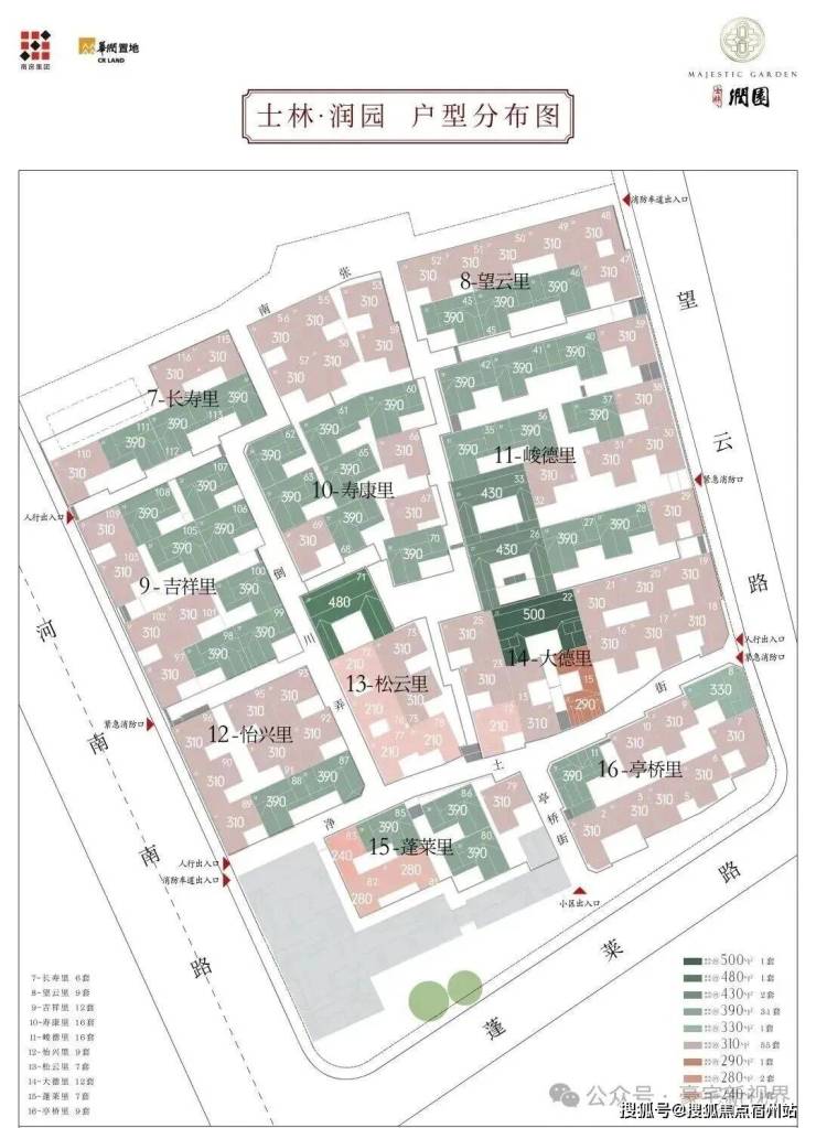 合院地上三层,面积段约210-500㎡,计合院82套。