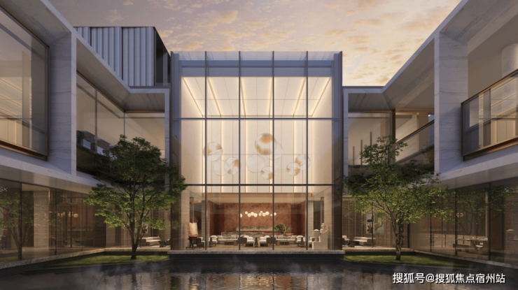 同时,部分采用天青色釉面陶板,超扁平形制,同样搭配大面幅落地Low-e三玻两腔玻璃,让建筑像是妙手剪裁的艺术品般行云流水,更大程度的为业主带来宽绰视野,体验摩登生活。