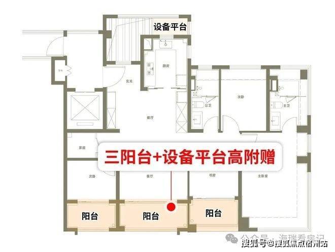 该户型标配的三阳台,阳台附赠面积约7.15平,简单换算相当于近90万的额外馈赠。