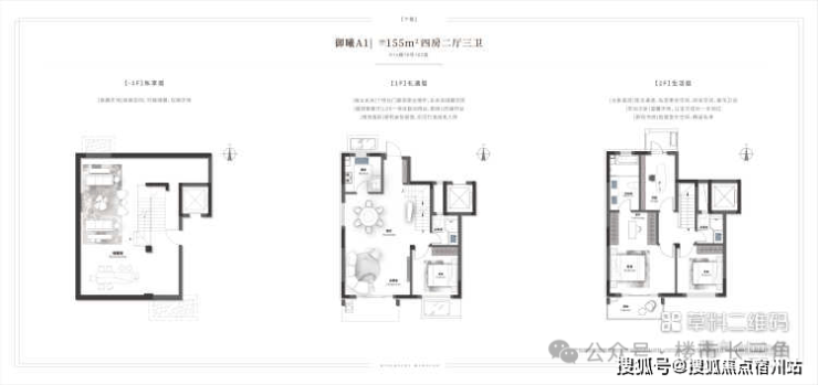 上叠:实现 2+1房2卫 设计,长辈房位于三层、配卫生间,规避上下楼梯的麻烦。 南向阳台与餐客厅一线贯通 ,享受充沛阳光。 四层豪华主卧、北侧连接露台, 空中露台及顶层阳光平台,可量身定制成一方幸福天地。