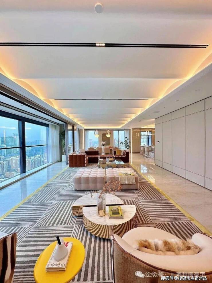 装修上,将时尚与奢华巧妙融入每个角落,所有的窗帘、移门、提升窗、灯光、空调、新风、地暖都可以通过手机远程控制。