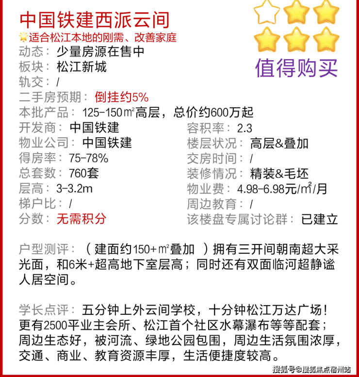 最新消息,松江新城「中国铁建西派云间」少量房源在售中!在售建面约125-150㎡高层,总价约600万起!