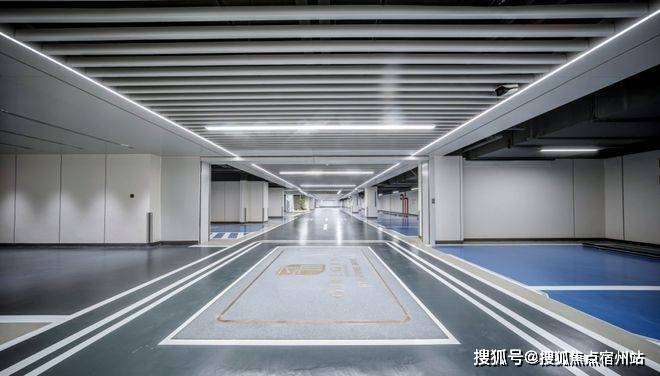 公区也做了一部分的实景展现。车库里整体采用环氧地坪,✅✅虹口源717售楼处电话:400 - 8824 - 258✅✅防滑且耐用,过道全部是格栅吊顶,还为车位承重柱旁设置防撞标识。