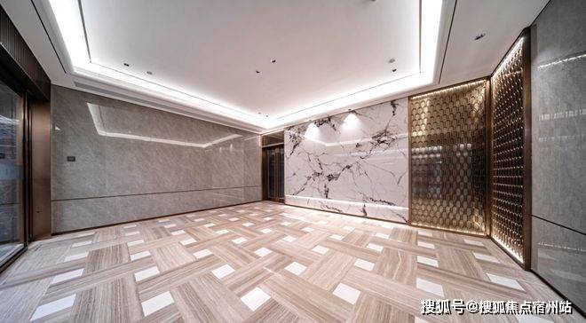 地下归家大堂,电梯厅的地面都是木纹拼花石材,✅✅虹口源717售楼处电话:400 - 8824 - 258✅✅呈现视觉美。