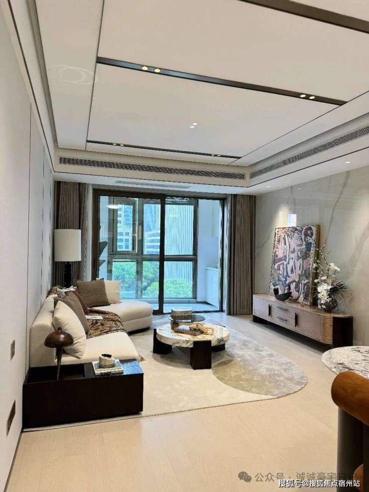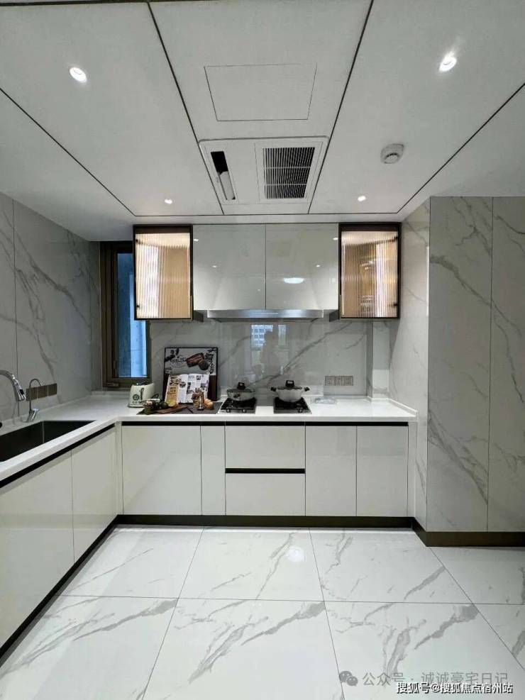 细节方面,项目采用了 拉米娜 的进口电视背景墙、顶级奢侈品牌 卡莉斯塔 的主卫龙头、 ABB 的智能化控制、 LG 的厨房台面,甚至是阳台的 电动晾衣架、水槽、吊柜都是交付标准。
