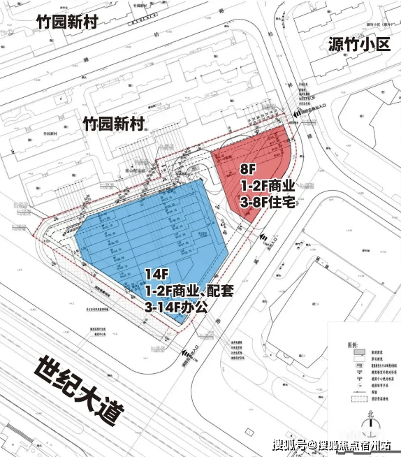 建设内容:西面的14层建筑,1-2层规划商业、配套,3-14层是办公;东面的8层建筑,1-2层是商业,3-8层是住宅。