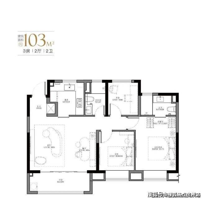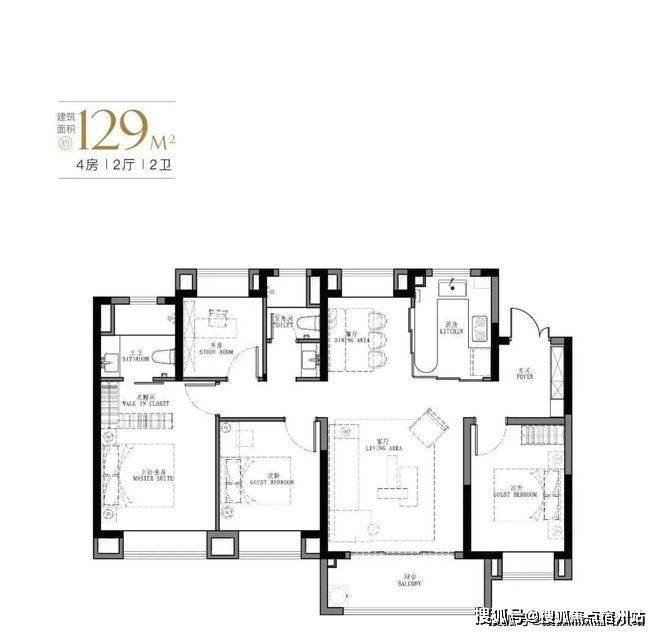 产品:103㎡、107㎡的三房两厅两卫及123㎡、129㎡的四房两厅两卫
