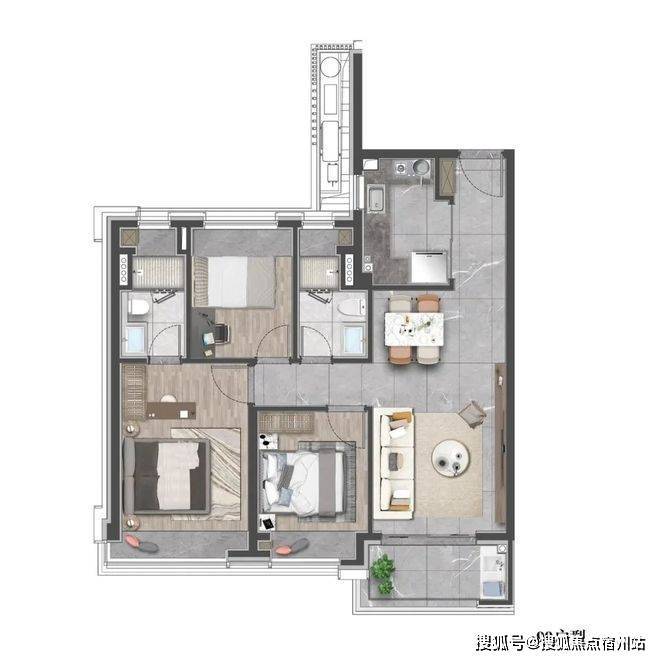 三进:尊享水苑-入户门庭仪式水景;下沉会所-私享品质生活;社区会客厅(约20m²)-度假式摩登私享泛会所。