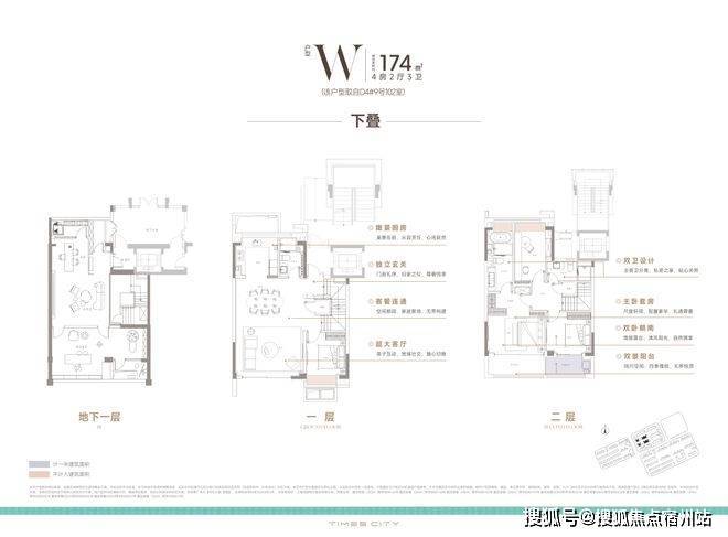 174m²下叠,挑高的宽绰地下室+公共绿地,真正的别墅享受: