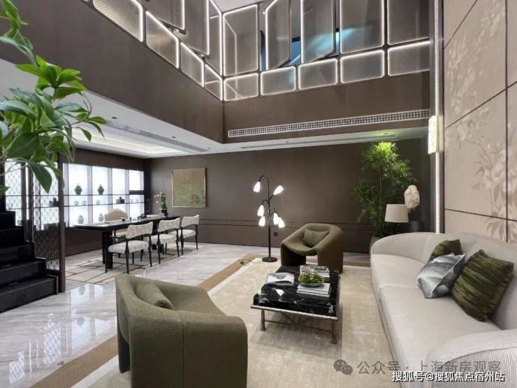 移步 接待区,宛如步入精心布置的 庭院会客厅。光影透过艺术玻璃,筛落一地斑驳,似竹影摇曳,又似几何光影的精密排布。空间的聚焦,是向下垂落艺术楼梯与屋顶繁华的关联之处,楼梯不仅是连接垂直维度的纽带,更是一件流动的雕塑,功能与艺术在此完美融合。
