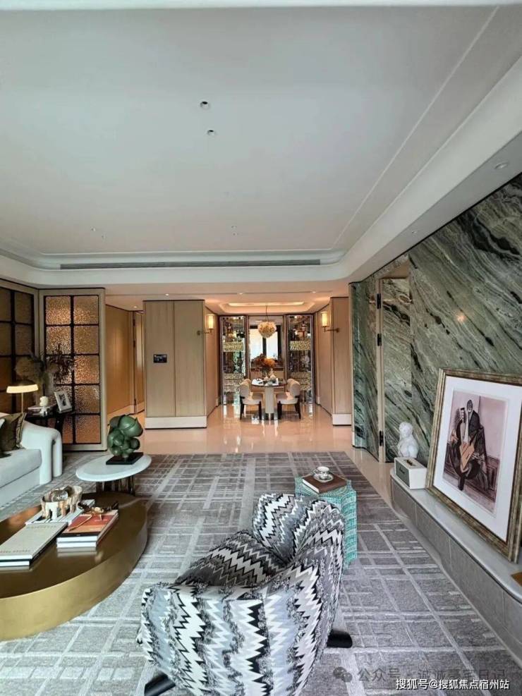 社区主入口更是兼具 豪华酒店 与 海派元素 设计风格,挑高约 6 米的入户大堂、水系景观与艺术家共创作品交相辉映,奢华感和高级感拉满!