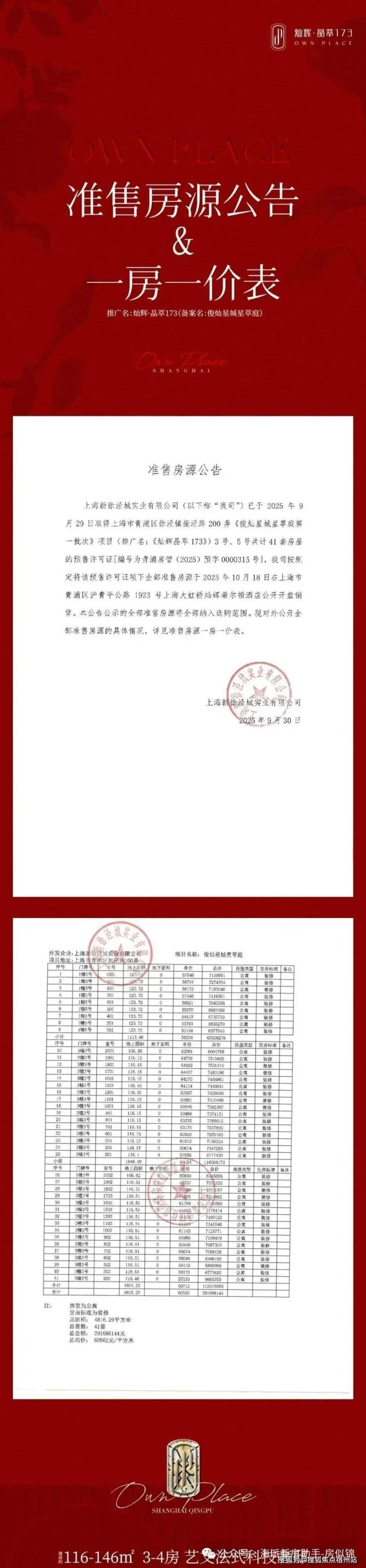 一房一价表发布:
