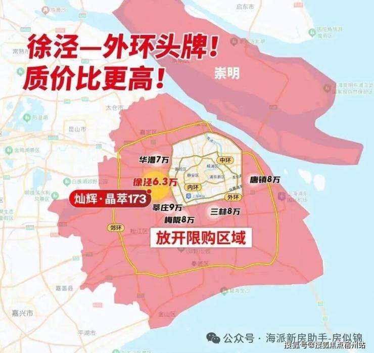 据销售人员透露,灿辉·晶萃173的总价在700-1000万左右,116㎡改善大三房总价700万级。而同样700万,只能买七宝、莘庄、桃浦等板块的90㎡紧凑户型,或者买南翔、华漕的100㎡户型。这些板块比起徐泾如何?