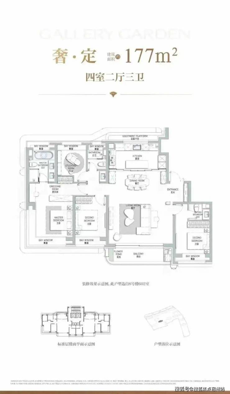177㎡艺术贵雅奢邸是海上·清和玺压轴力作,延续玺系经典的设计理念和思路,阔朗的四面大开间设计,客厅做到了大横厅设计,延续了曲面流体的阳台,并赠送了独具特色的阳台迷你花园。