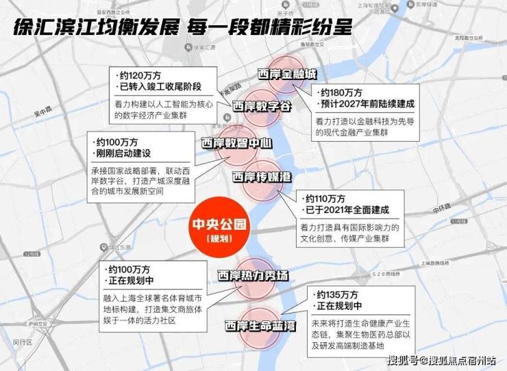 徐汇滨江热度之高,是得益于远瞻世界的战略规划,徐汇滨江打造“世界卓越水岸”,规划有百万方规划组团。徐汇滨江迄今已规划六个百万方组团, 聚焦⼀港、⼀⾕、⼀城、⼀场、⼀湾、⼀心的六个百万⽅空间布局(⻄岸⾦融城、⻄岸数字⾕、⻄岸数智中心、⻄岸传媒港、⻄岸热⼒秀场和⻄岸⽣命蓝湾),而第七大组团“中央公园”,完美覆盖海上·清和玺所在上海植物园区域,未来将无界链接城市生态资源,促进徐汇滨江与城区无界融合、兑现徐汇滨江的高质量发展。