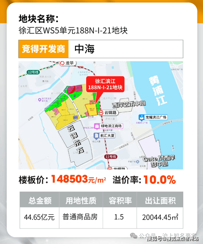 徐汇滨江地块14.85万/㎡的楼板价,不仅刷新了上海滨江土地市场的历史!其未来超20万/㎡的预期售价,更凸显了区域价值的飞跃!
