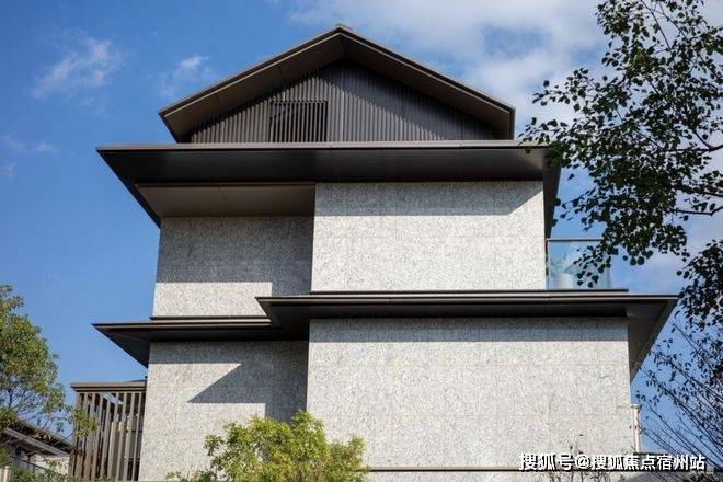 新亚洲国际建筑风尚,搭配独特的坡屋顶,✅✅兴云间售楼处电话:400 - 8824 - 258✅✅灰色陶瓦结合金属挑檐设计,约35°倾斜稳定结构防积水,楼体形态和谐、黄金比例赋予建筑独一无二的美。