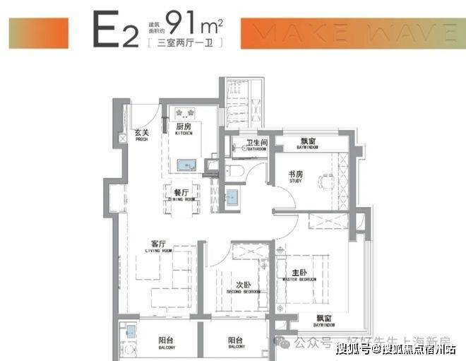 “南向双阳台+南北双飘窗”,构筑真3房户型!