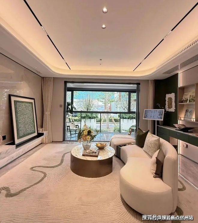 建筑艺术:玻璃 + 铝板 + 石材立面配 270° 弧形飘窗,叠墅复刻宋式坡屋顶与格栅窗棂,高层以横向线条勾勒 “悬浮质感”。
