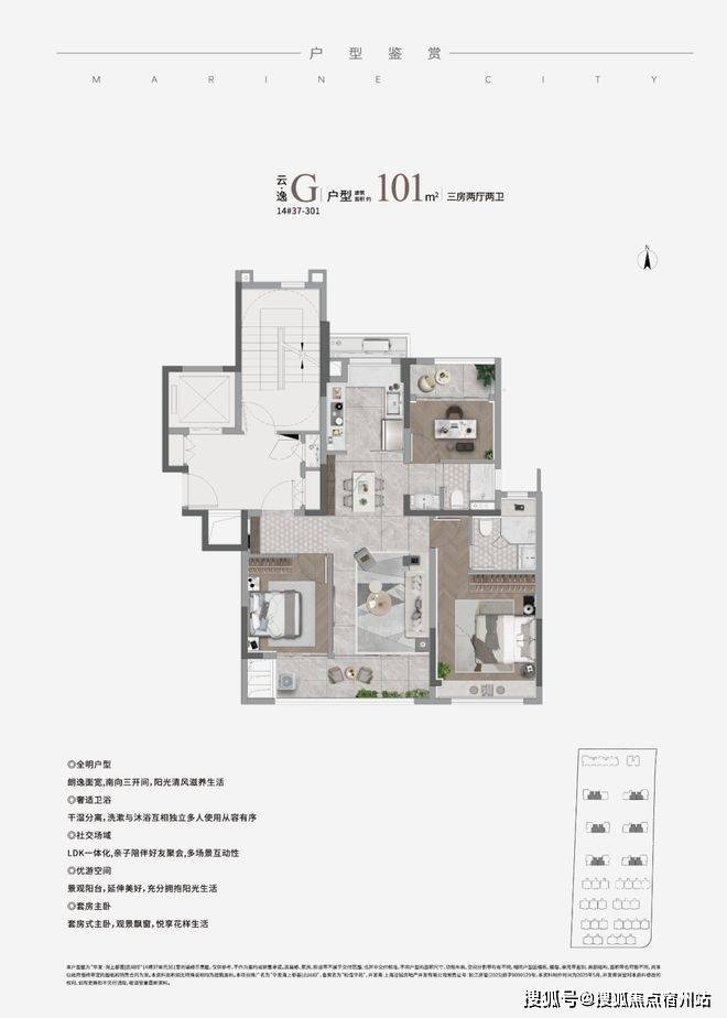 建面约101㎡高层三房F和G户型,在尺度感上更进一步,三个卧室处于房子的三个方位,孩子、长辈都有自己的私密空间。✅✅华发海上都荟售楼处电话☎:400-833-6309【欢迎预约】