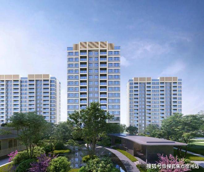 项目建筑为现代典雅风格,外立面采用多彩真石漆+香槟金色铝合金线条,顶部的塔冠设计是标志性特点。