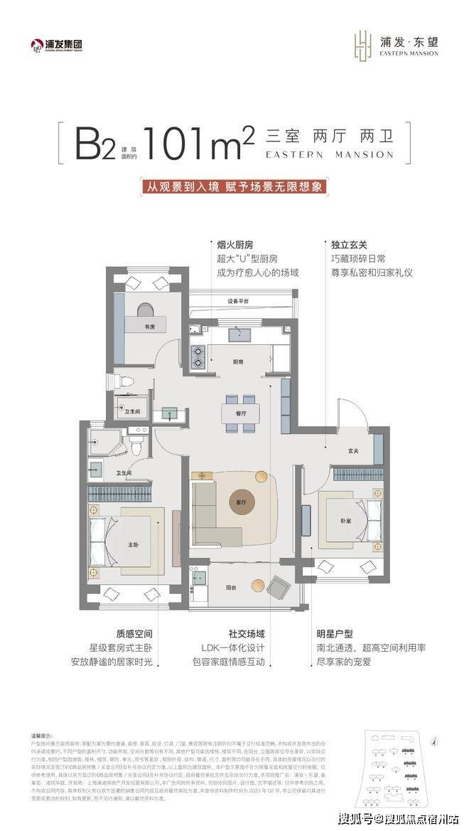 B2户型则是含金量非常高的南北通透飞机户型,动线更加合理。